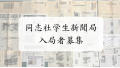 お知らせ 同志社学生新聞局電子版開設のお知らせ 学生新聞局について 初めまして、同志社大学学生新聞局です。私たちは同志社内外のさまざまな情報を発信することを目的に活動しているサークルです。読売新聞の協力のもと年4回タブロイド紙で新聞発行、月1〜2回は同志社かわら版として簡易新聞を配布して... 2024.05.10 お知らせサークル活動紹介
