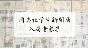 お知らせ 春から同志社のみなさんへ 春から同志社生のみなさん、ご入学おめでとうございます!初めまして、同志社大学学生新聞局です。私たちは同志社内外のさまざまな情報を発信することを目的に活動しているサークルです。読売新聞の協力のもと年4回タブロイド紙で新聞発行、月1〜2回は同志... 2024.05.11 お知らせサークル活動紹介