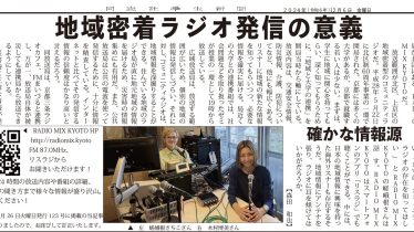 未分類 2024年11月26日火曜日発行の123号の修正とお詫び この度は2024年11月26日火曜日発行の123号におきまして、当団体のRADIOMIXKYOTO様への確認不足により記事に誤りがあったため、修正してお詫び申し上げます。読者の皆様、取材にご協力いただきましたRADIOMIXKYOTO様、誤... 2024.12.07 未分類